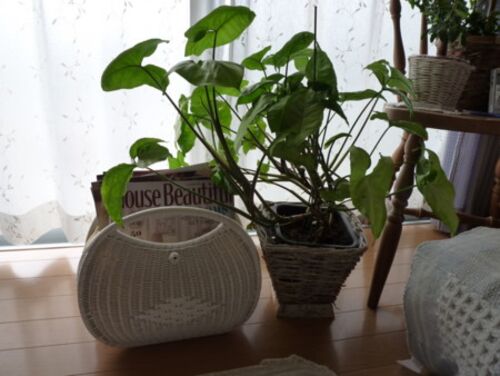 先日我が家の観葉植物を紹介させてもらったのですが(5月1日の日記参照)、我が家の子たちはまだ買って1カ月。少し成長したとはいえ、まだまだおチビちゃんたちです。が!母マリコ宅の子たちはすごいです。100均で買ったとは思えないほど大きく成長しています…