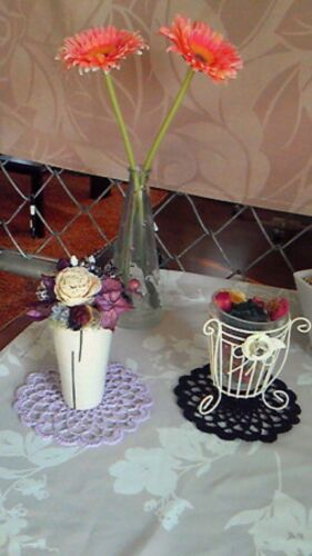 ワカさんから「お誕生日に母マリコからもらったアレンジに合うドイリーを作って欲しい」という依頼を受け、先月時間を見つけて編み編み。2枚のドイリーを完成させました。先週帰省した際、遅らばせながら、しーちゃんからワカさんへのお誕生日プレゼントと…