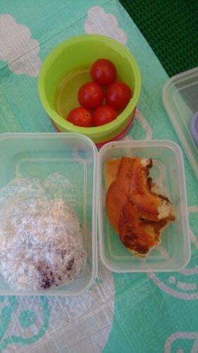 週末は息子君と電車のイベントに行きました。諸事情によりお弁当が準備できなかったのだけど、 少しでも節約!ということで、 家にある残り物を少しだけ持って行きました。ほんとに残り物。(^^;現地でポテトとチキンを購入。750円のランチになりました。…