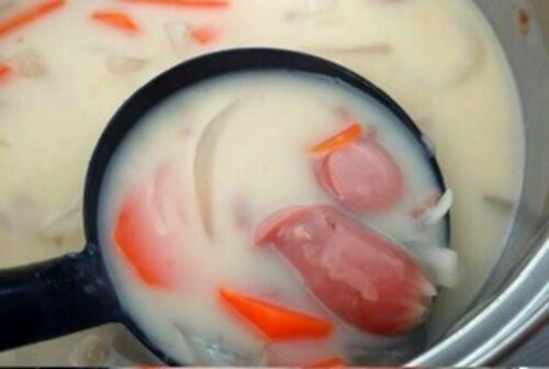 某日の夜ご飯。 シチューにお肉を入れる代わりにウィンナー。 少し節約になっている・・・かなぁ? 上の子が特に気に入ってくれました。