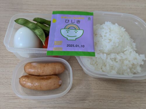久しぶりの出社。 そして出社時の貧相な残り物お弁当。 真ん中に鎮座しているふりかけは、 子どもが学校給食で出たと言って持って帰ってきたもの。 私の体が鉄分が不足しがちなことを知っていて、 わざわざ残してくれたようです。 何ていい子なの!と親ばか…